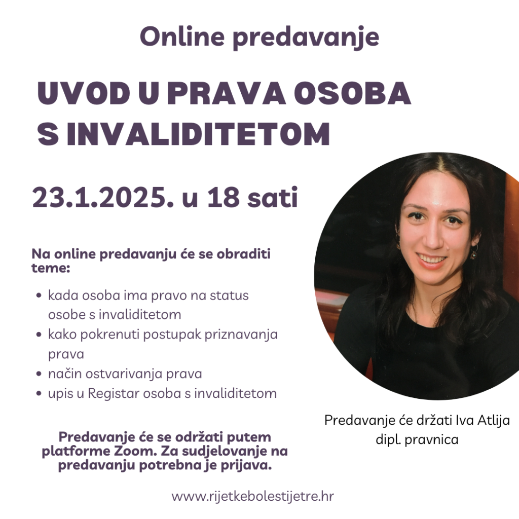 Najavljujemo ciklus online predavanja pod nazivom „Socijalna, radna i druga prava oboljelih od rijetkih bolesti i osoba s invaliditetom”.