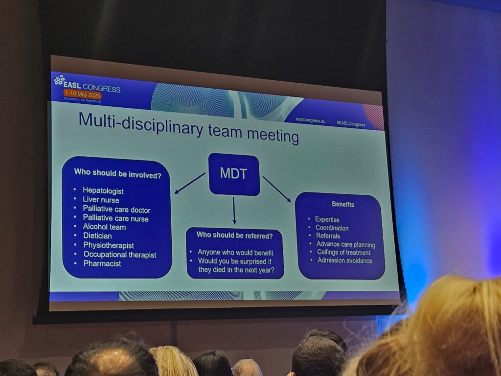 Na EASL kongresu 2025 u Amsterdamu, koji je održan od 7. do 10.5.2025., posebno se govorilo o tome kako uključiti palijativnu skrb ranije i kvalitetnije u hepatološku praksu i kako se kod osoba s cirozom, hepatocelularnim karcinomom, autoimunim hepatitisom i drugim rijetkim bolestima jetre, simptomi poput boli, umora, zbunjenosti, mučnine ili grčeva mogu i moraju ublažiti.